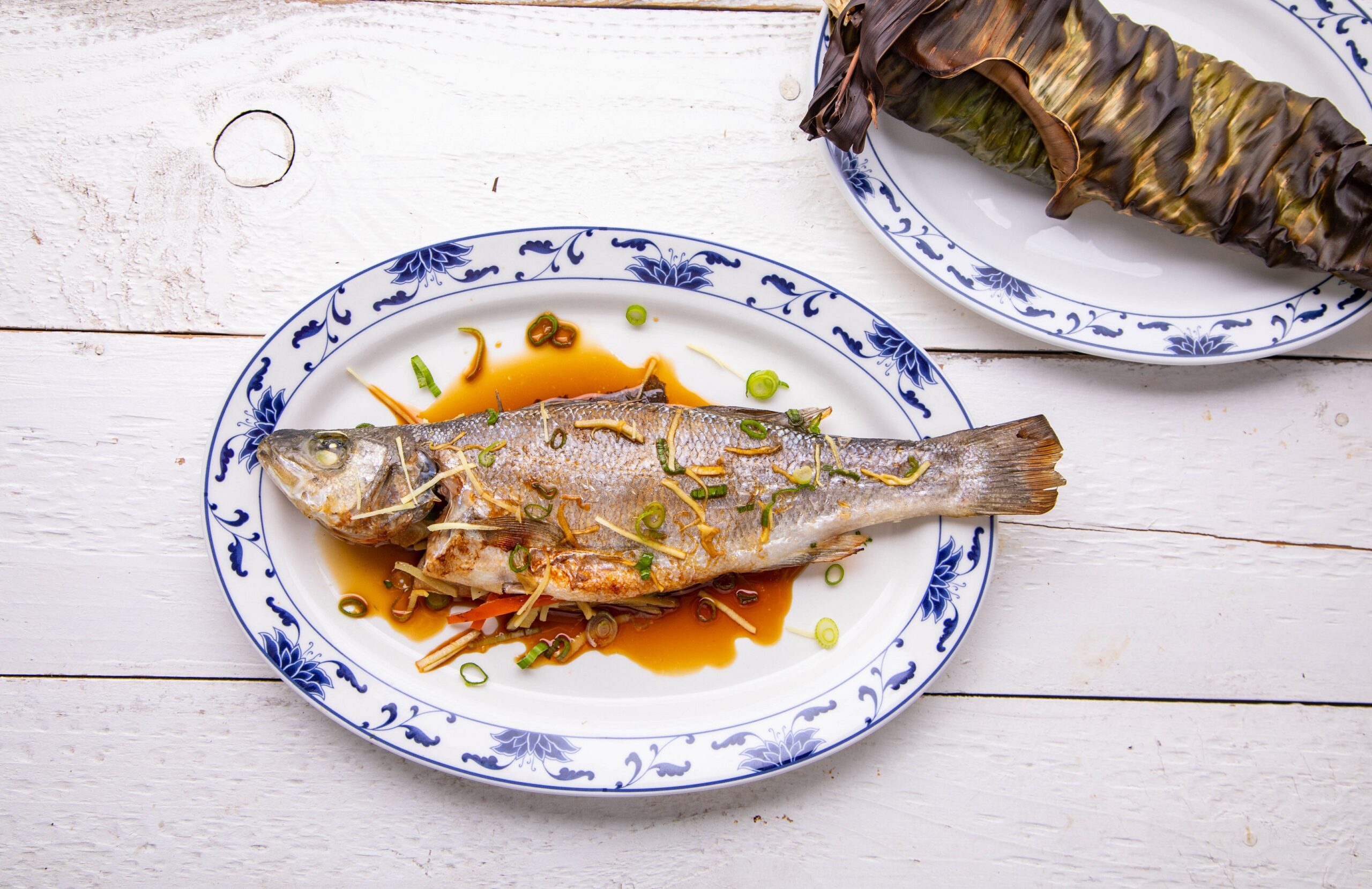 BBQ Sea Bass wrapped in Banana Leaves