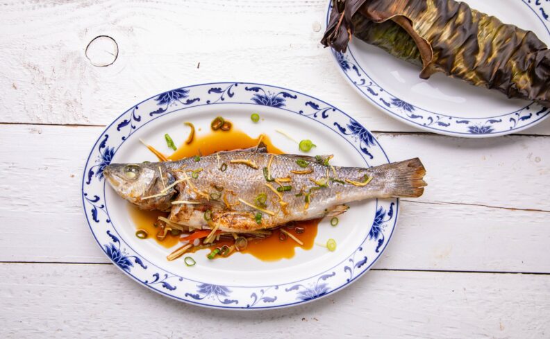 BBQ Sea Bass wrapped in Banana Leaves