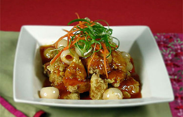 Crispy Fish in Sweet and Sour Sauce with Lychees