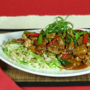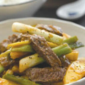 300g beef (steak is recommended, finely sliced across the grain)