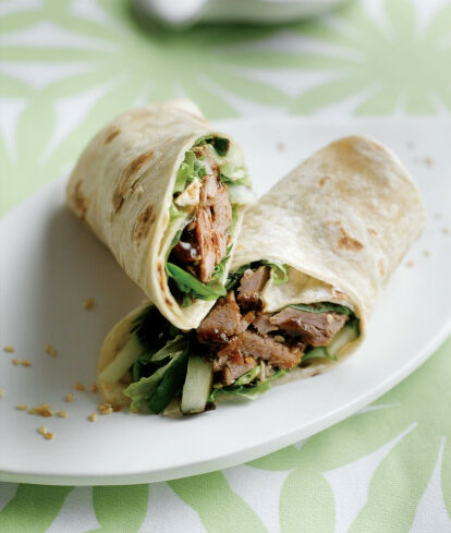 Heat wraps under a hot grill or in the microwave (30 seconds) until they are soft.