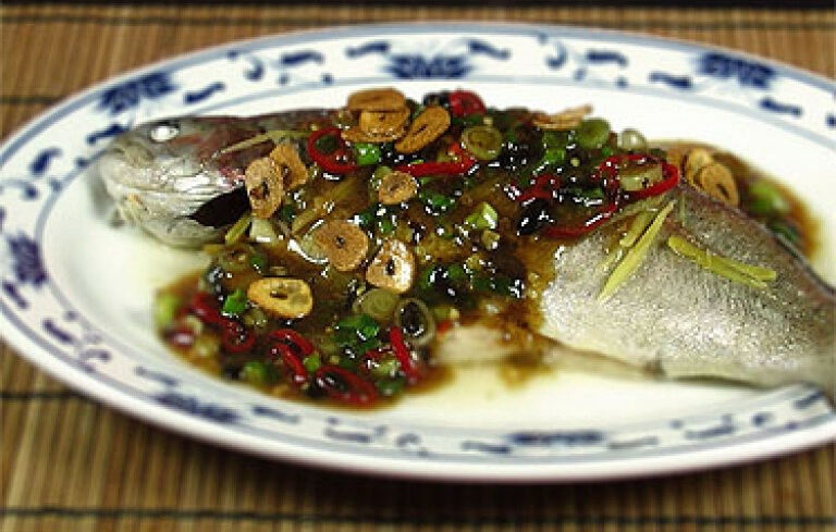 Place sliced ginger into the body cavity and place fish onto a heatproof plate. Steam in a wok or steamer over high heat for approx 7 minutes. Fish is cooked when the flesh comes away from the bone.