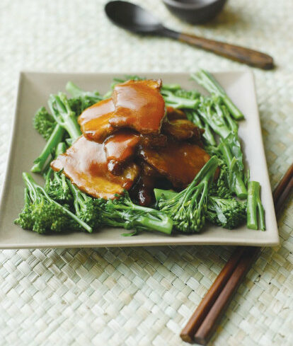Remove oil from the wok, leaving 2 Tbsp to quickly sir fry the blanched broccoli. Season with salt and pepper.
