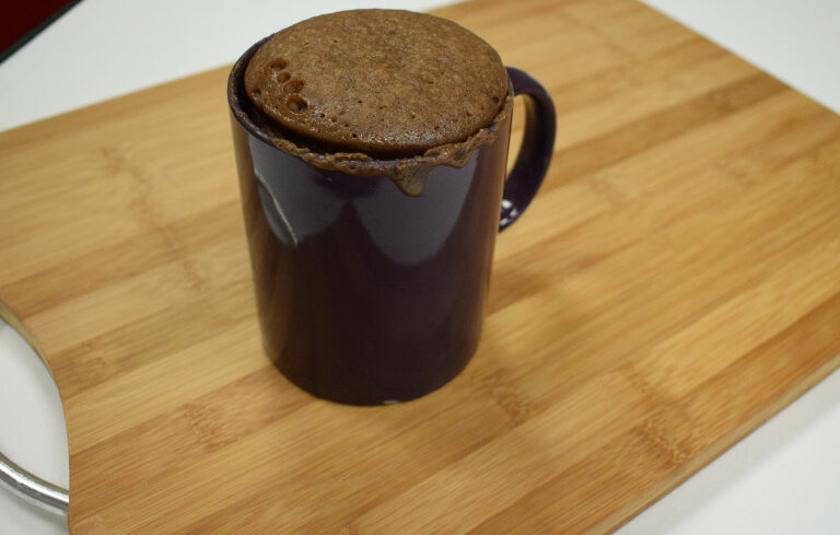 Put all of the mixture into a mug and ensure that it does not fill more than half of the mug.